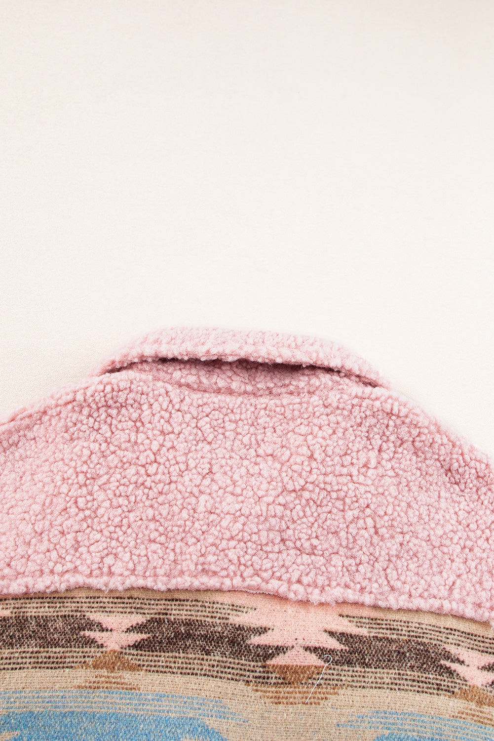 Stay on trend with our Pink Western Aztec Print Sherpa Splicing Buttoned Flap Pocket Coat. This unique design effortlessly combines fashion and functionality, ensuring you stay warm and stylish throughout the season. The luxurious sherpa splicing provides an extra layer of comfort, while the practical buttoned flap pockets offer convenient storage for your essentials. Perfect for any outdoor occasion, this versatile coat is an absolute must-have addition to your wardrobe. (1) Size Chart (CM) Sizes: Bust (Relax), Hem_Width (Relax), Shoulder (Relax), Sleeve_Length (Relax), Length (Back) S: 112, 114, 56, 52.5, 68.1 M: 118, 120, 59, 53, 70 L: 124, 126, 62, 53.5, 71.9 XL: 132, 134, 66, 53.5, 73.8 Elasticity: None (1) Size Chart (INCH) Sizes: Bust (Relax), Hem_Width (Relax), Shoulder (Relax), Sleeve_Length (Relax), Length (Back) S: 44.1, 44.9, 22.0, 20.7, 26.8 M: 46.5, 47.2, 23.2, 20.9, 27.6 L: 48.8, 49.6, 24.4, 21.1, 28.3 XL: 52.0, 52.8, 26.0, 21.1, 29.1 Elasticity: None