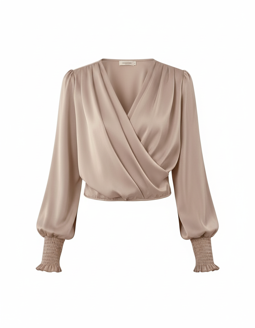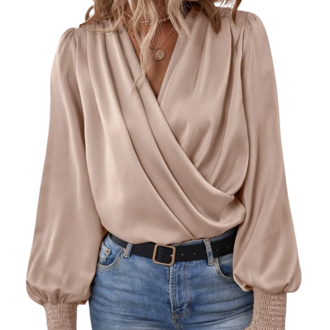 Step up your wardrobe with this chic wrap blouse that brings sophistication to your everyday look, blending comfort with timeless elegance.