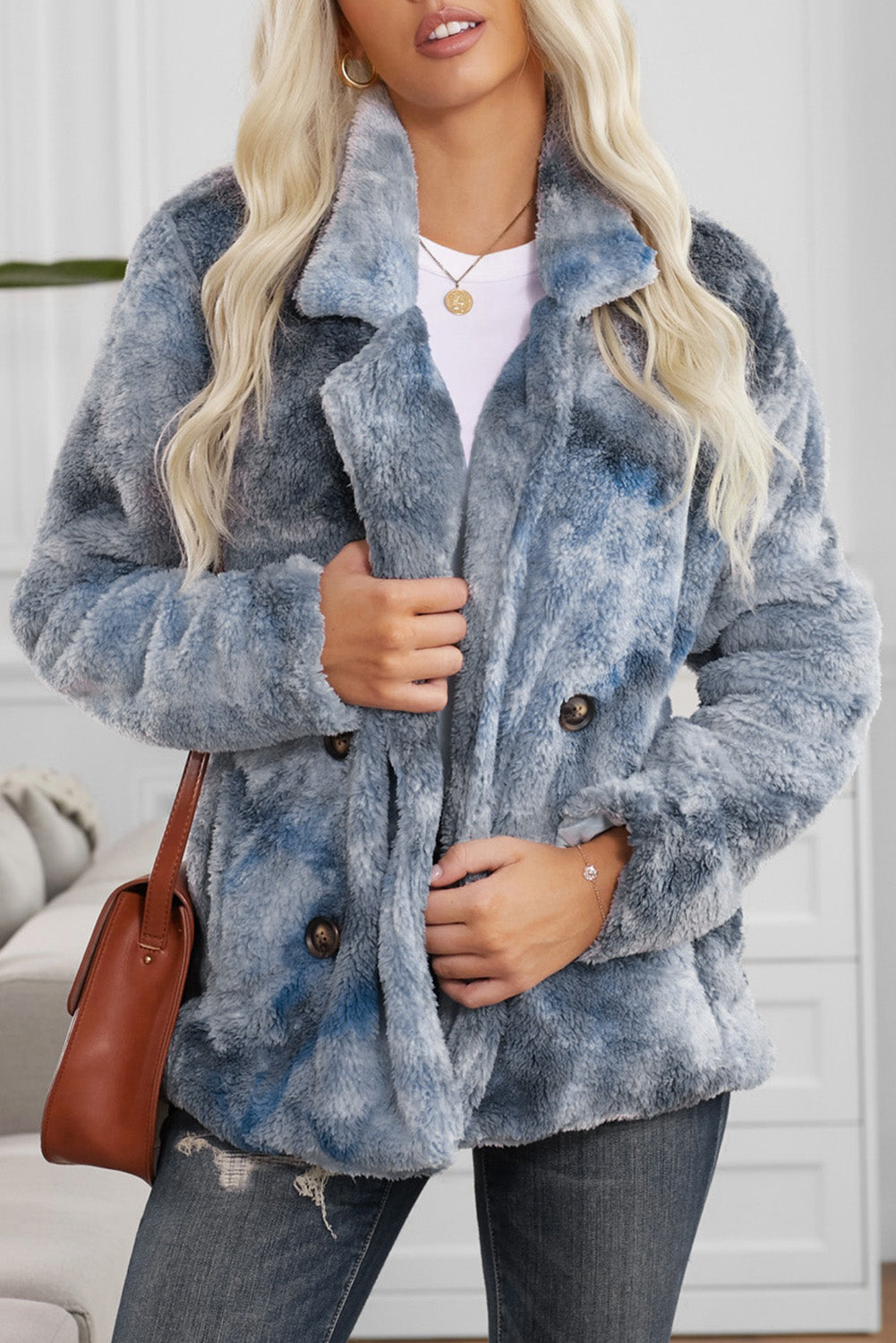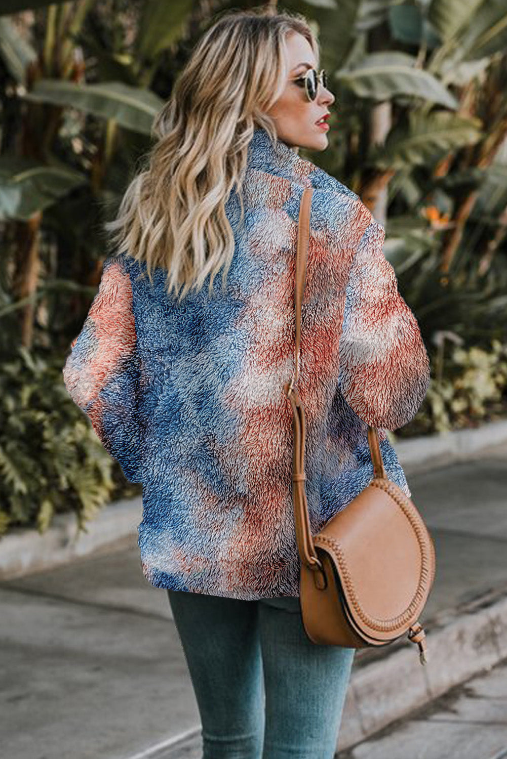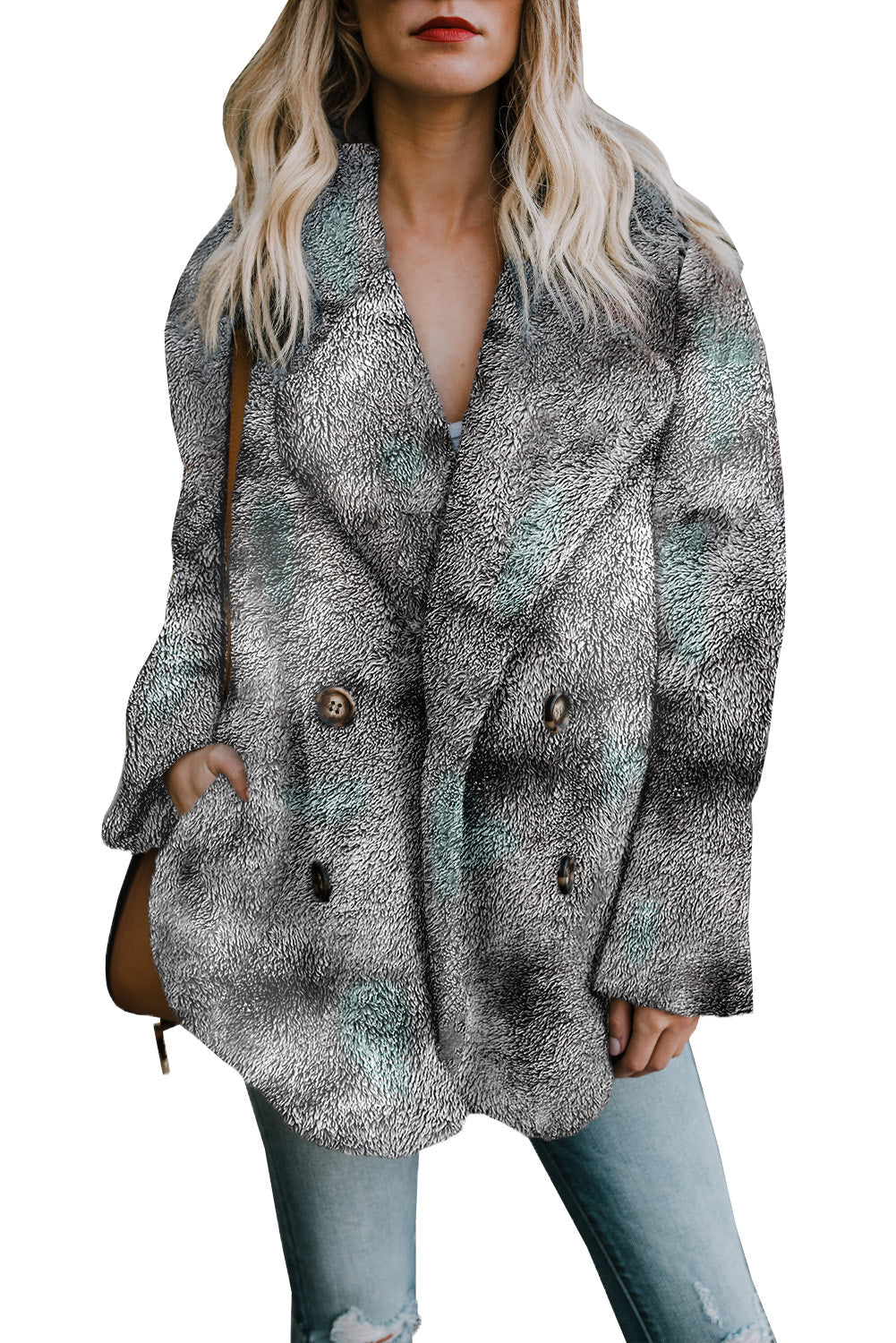 Embrace warmth and style this winter with our Tie Dye Lapel Collar Open Front Fleece Coat. Crafted from premium, skin-friendly fabric, this plush coat offers exceptional comfort and a soft feel. Featuring a trendy tie-dye print, stylish lapel, two convenient side pockets, and luxurious faux fur detailing, this warm and cozy fleece coat is perfect for chilly days. It's versatile for daily wear, school, vacation, work, clubbing, parties, or a stroll down the street. Pair it effortlessly with skinny jeans, leggings, t-shirts, tops, and shirts. Size Chart (CM): S: Bust 106, Shoulder 40.8, Sleeve Length 62, Length 70; M: Bust 111, Shoulder 42, Sleeve Length 63, Length 72; L: Bust 116, Shoulder 43.2, Sleeve Length 64, Length 74; XL: Bust 124, Shoulder 45.4, Sleeve Length 65, Length 76; 2XL: Bust 132, Shoulder 47.6, Sleeve Length 66, Length 78. Size Chart (INCH): S: Bust 41.7, Shoulder 16.1, Sleeve Length 24.4, Length 27.6; M: Bust 43.7, Shoulder 16.5, Sleeve Length 24.8, Length 28.3; L: Bust 45.7, Shoulder 17.0, Sleeve Length 25.2, Length 29.1; XL: Bust 48.8, Shoulder 17.9, Sleeve Length 25.6, Length 29.9; 2XL: Bust 52.0, Shoulder 18.7, Sleeve Length 26.0, Length 30.7. Elasticity: Medium (one-sided stretched). Important Notes: 1. There may be 1-2 cm (0.4-0.8 inch) deviation in measurements. The size chart is for reference; actual garment measurements may vary. 2. Color may be lighter or darker due to different PC displays. 3. Care Instructions: Hand wash in 30-degree water, hang to dry in shade, do not bleach. 4. Slight differences in detail and pattern may occur.